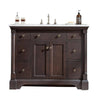 Eviva Preston is reminiscent of early Victorian spirit and inspired by homes of Kingston styles. Its intricately carved reeded columns, decorative molding and dentil cornices elevate the beauty of this traditional vanity which is further enhanced by a bold Aged Chocolate finish. Soft-close roller-bearing dovetail drawers make this lovely vanity even more appealing. Gracing the top of the vanity is a gorgeous Italian Carrara marble countertop with ceramic undermount sink and 8 inches widespread faucet holes. Eviva Preston comes in 30, 42, 48, 60 and 72 inches as well as this 36 inches model.