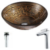 The ANZZI Alto Series sink is a traditionally crafted round vessel sink adorned in a Molten Gold finish. Each ANZZI vessel sink if formed using RHINO ALLOY certified high tempered Deco-Glass material. The result is an elegantly shaped and captivating vessel centerpiece for any bathroom counter.