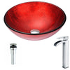 Crown Series Deco-Glass Vessel Sink in Lustrous Red with Key Faucet in Brushed Nickel