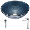 The ANZZI Tempo Series sink is a traditionally crafted round vessel sink adorned in a Coiled Blue Finish. Coupled with the ANZZI Enti Vessel Sink Faucet, this combination provides pure elegance in any bathroom. Each ANZZI vessel sink and faucet is formed using RHINO ALLOY certified materials for strength and quality along with high tempered Deco-Glass. The result is a perfectly shaped dynamically captivating vessel and faucet centerpiece for any bathroom counter.