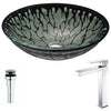 Bravo Series Deco-Glass Vessel Sink in Lustrous Black with Enti Faucet in Brushed Nickel