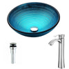 Enti Series Deco-Glass Vessel Sink in Lustrous Blue with Harmony Faucet in Polished Chrome