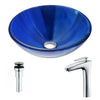 Meno Series Deco-Glass Vessel Sink in Lustrous Blue with Fann Faucet in Brushed Nickel