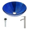 Meno Series Deco-Glass Vessel Sink in Lustrous Blue with Fann Faucet in Chrome