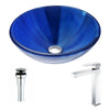 Meno Series Deco-Glass Vessel Sink in Lustrous Blue with Harmony Faucet in Brushed Nickel