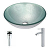 Spirito Series Deco-Glass Vessel Sink in Churning Silver with Crown Faucet in Chrome