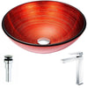 The ANZZI Echo Series sink is a traditionally crafted round vessel sink adorned in a Lustrous Red Finish. Coupled with the ANZZI Harmony Vessel Sink Faucet, this combination provides pure elegance in any bathroom. Each ANZZI vessel sink and faucet is formed using RHINO ALLOY certified materials for strength and quality along with high tempered Deco-Glass. The result is a perfectly shaped dynamically captivating vessel and faucet centerpiece for any bathroom counter.