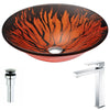Forte Series Deco-Glass Vessel Sink in Lustrous Red and Black with Enti Faucet in Brushed Nickel