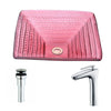 The ANZZI Ritmo Series sink is a traditionally crafted rough squared vessel sink adorned in a Lustrous Translucent Red Finish. Coupled with the ANZZI Fann Vessel Sink Faucet, this combination provides pure elegance in any bathroom. Each ANZZI vessel sink and faucet is formed using RHINO ALLOY certified materials for strength and quality along with high tempered Deco-Glass. The result is a perfectly shaped dynamically captivating vessel and faucet centerpiece for any bathroom counter.