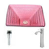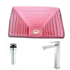 Ritmo Series Deco-Glass Vessel Sink in Lustrous Translucent Red with Enti Faucet in Chrome