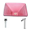 Ritmo Series Deco-Glass Vessel Sink in Lustrous Translucent Red with Key Faucet in Polished Chrome