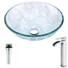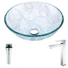 Vieno Series Deco-Glass Vessel Sink in Crystal Clear Floral with Enti Faucet in Brushed Nickel