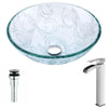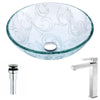 Vieno Series Deco-Glass Vessel Sink in Crystal Clear Floral with Key Faucet in Polished Chrome