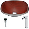 Cansa Series Deco-Glass Vessel Sink in Rich Timber with Fann Faucet in Brushed Nickel
