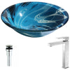 Symphony Series Deco-Glass Vessel Sink in Lustrous Dark Blue with Enti Faucet in Chrome