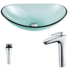 Major Series Deco-Glass Vessel Sink in Lustrous Green with Fann Faucet in Brushed Nickel