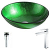 Melody Series Deco-Glass Vessel Sink in Lustrous Green with Harmony Faucet in Brushed Nickel
