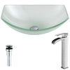 Pendant Series Deco-Glass Vessel Sink in Lustrous Frosted with Key Faucet in Polished Chrome