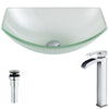 Pendant Series Deco-Glass Vessel Sink in Lustrous Frosted Finish with Key Faucet in Brushed Nickel