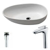 Trident One Piece Man Made Stone Vessel Sink in Matte White with Fann Faucet in Chrome