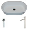 Vaine One Piece Man Made Stone Vessel Sink in Matte White with Fann Faucet in Chrome