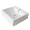 The white china wash basin features a wide rectangular structure with a three-hole centerset drilling on the faucet deck. The interior is measured at 5-1/2” deep and also wide in diameter providing space and easy-washing. Its simplistic design coordinates with both classic and modern style giving your bathroom a satisfying look.