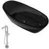 Ember 5.4 ft. Man-Made Stone Freestanding Non-Whirlpool Bathtub in Midnight Black and Kros Series Faucet in Chrome