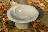 We suggest that birdbath/fountain tops not be left outside in the winter. Once the top fills with water/snow and freezes, the top may crack. All birdbath/fountain bases, bench legs and statuary should be raised up off the ground in winter so they will not freeze to the ground surface. Ideally, a fountain should be stored indoors in the winter away from the elements. However, if a fountain bowl must be left outside, remove all pumps, rubber stoppers, drain pipes, finials and small components, and cover the top with burlap or any absorbent material (old blanket/towel) and then wrapped with dark plastic, making sure that water does not accumulate in the basin and freeze. Fountain pumps, finials, and other small components should be stored indoors. Check the fountain periodically to insure that the cover is secure and water is not accumulating in any fountain component.