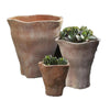 While the high firing temperature and quality of our glazed and terra cotta containers results in a durable and frost-resistant product, we still recommend that they be stored in a frost-free covered area in winter. If left outside, water may accumulate in the container and freeze, causing the planter to crack and break. Planters that must be left outside should be covered to prevent water, snow and ice from accumulating inside the planter.