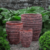 While the high firing temperature and quality of our glazed and terra cotta containers results in a durable and frost-resistant product, we still recommend that they be stored in a frost-free covered area in winter. If left outside, water may accumulate in the container and freeze, causing the planter to crack and break. Planters that must be left outside should be covered to prevent water, snow and ice from accumulating inside the planter.