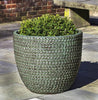 While the high firing temperature and quality of our glazed and terra cotta containers results in a durable and frost-resistant product, we still recommend that they be stored in a frost-free covered area in winter. If left outside, water may accumulate in the container and freeze, causing the planter to crack and break. Planters that must be left outside should be covered to prevent water, snow and ice from accumulating inside the planter.