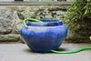 We suggest that birdbath/fountain tops not be left outside in the winter. Once the top fills with water/snow and freezes, the top may crack. All birdbath/fountain bases, bench legs and statuary should be raised up off the ground in winter so they will not freeze to the ground surface. Ideally, a fountain should be stored indoors in the winter away from the elements. However, if a fountain bowl must be left outside, remove all pumps, rubber stoppers, drain pipes, finials and small components, and cover the top with burlap or any absorbent material (old blanket/towel) and then wrapped with dark plastic, making sure that water does not accumulate in the basin and freeze. Fountain pumps, finials, and other small components should be stored indoors. Check the fountain periodically to insure that the cover is secure and water is not accumulating in any fountain component.