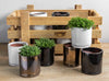 Our glazed and terra cotta pottery is high fired between 990 (terra cotta) and 1000 (glazed) degrees centigrade to ensure frost resistance and durability. Due to the processes used in the manufacturing of our hand-made and hand-glazed containers, all variations with respect to firing, color, size and crackling are natural occurrences in the manufacturing process. The glazes on our containers consist of natural, not chemical, components and therefore the final color of the product will vary. This process creates the unique beauty of each piece.