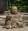 All bench legs and statuary should be raised up off the ground in winter so they will not freeze to the ground surface. Items that have areas that pool water should be wrapped with burlap or any absorbent material (old blanket/towel) and then wrapped with dark plastic, making sure that water does not accumulate and freeze.