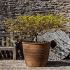 In the winter, if a planter is to remain planted, they should be raised up off the ground making sure not to block the drainage hole. This allows the planter to drain and will prevent the planter from freezing to the ground. If the planter is not to be planted, it should be brought inside to a garage or shed. If this is not possible, follow the steps above, but turn the planter upside down to prevent it from filling with snow and ice. It should then be covered or wrapped with burlap or any absorbent material (old blanket/towel) and then wrapped with dark plastic to prevent it from accumulating moisture.