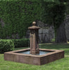 We suggest that birdbath/fountain tops not be left outside in the winter. Once the top fills with water/snow and freezes, the top may crack. All birdbath/fountain bases, bench legs and statuary should be raised up off the ground in winter so they will not freeze to the ground surface. Ideally, a fountain should be stored indoors in the winter away from the elements. However, if a fountain bowl must be left outside, remove all pumps, rubber stoppers, drain pipes, finials and small components, and cover the top with burlap or any absorbent material (old blanket/towel) and then wrapped with dark plastic, making sure that water does not accumulate in the basin and freeze. Fountain pumps, finials, and other small components should be stored indoors. Check the fountain periodically to insure that the cover is secure and water is not accumulating in any fountain component.