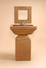 Water comes out the large ball topper with tapered square bowls on an inverted partial square pyramidal base.