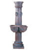 A decorated column placed in a wide pond makes up the Green Man Pond Fountain. Water flows down over the column, creating a unique and entertaining visual display.