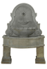 With a flat top for planters or other decor, the arch motif encompasses the spout of your choice that spills into a scupper bowl. The catch basin is supported by a pedestal against a plain flatwall. Surely a unique style for your entryway, patio or outdoor room.