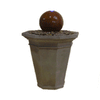 A most unique fountain features water spurting from the top of the ball clinging to it as it flows into the pebble-topped urn. The hexagonal urn is tapered inward for an elegant appeal.