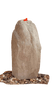 Standing tall and narrow, this Rubicon rocks are perfect for the zen style garden. Water emanates from the ball finial atop the realistic rock fountain. The water will pour over the surface with a simple relief into the ground basin (optional). Shown with how the 1B-LED Nozzle Light will light up the water.