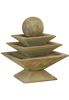 This quaint garden water fountain features a large ball from where the water spurts. It then clings to the ball as it travels down to the square tapered bowl. Then, the water flows over the lower bowl with the same design that sits atop a short square pyramidal base. This nice garden fountain makes a wonderful addition to your array of flowers. It is also suited to nestle in a corner to liven up the area.