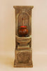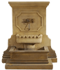 A flat top can accommodate small planters over the grape motif around the arched shallow alcove. Water dramatically pours water through the scuppers into the large urn basin below. The large brick motif on the alcove will blend nicely with a brick home or wall.