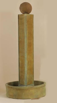 This pillar fountain will be the subject of conversation due to it is unique design. Water comes out the ball finial and streams over the textured sides. This water fountain is perfect for a patio or entryway because of it is tall and narrow design.