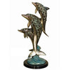 A Very Beautiful Marine Sculpture Standing 23" Tall. Featuring In A Natural Form 3 Dolphins Swimming. A Timeless Creation In Lost Wax Cast Bronze, With The Most Beautiful Of Gallery Quality Finishing. The Patina Chosen For This Timeless Creation Is A Mix Of Hand Finishing With Silver And Polychrome Techniques Also Referred To As Enameling Over Bronze.The Sculpture Sits On Marble Base.