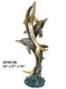 A Very Beautiful Marine Sculpture Standing 23" Tall. Featuring In A Natural Form 3 Dolphins Frolicking. A Timeless Creation In Lost Wax Cast Bronze . With The Most Beautiful Of Gallery Quality Finishing. The Patina Chosen For This Timeless Creation Is A Mix Of Hand Finishing With Silver And Polychrome Techniques Also Refferred To As Enameling Over Bronze. Sits On Marble Base.