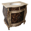 The Cabo Blanco Vanity from our Cabo Blanco Series is a 67" wide double bowl vanity. The vanity is beautiful and decorative as well as designed to make installation as easy as possible. It comes with a mounted beige solid marble top with pre-drilled holes for faucets, a mounted porecelain bowl and the back was designed with an opening to allow for easy plumbing hook-ups. This collection boasts a Spanish and French influence with its large scaled details in a finish of white weathered paint featuring a contrast of distressed whites and delicately detailed with hand painted soft scrolls. Consider ordering the single vanity for smaller bath application. The Cabo Blanco series is part of our Cabo Blanco Collection consisting of handmade, hand painted, and distressed solid wood furniture making each piece a timeless investment. Hand crafted treasures made one piece at a time, under one roof, by our exclusive family owned manufacturer from Lima, Peru. Their master artisans are skilled in furniture making techniques influenced by the Spanish during the colonization of Peru. Many items in the diverse collection feature specialty hand painted finishes that have also been passed on and perfected from generation to generation. The family strives to be environmentally friendly by using woods re-purposed from haciendas and old colonial homes as well as wood indigenous to South American forests, primarily mahogany, cedar, moena and requia. If you are a lover of beautiful painted furniture, find hill country rustic romantic, or find richness in Mediterranean lore Then you too may fall in furniture love with this fine collection.