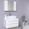 This Fresca Energie vanity can fit anywhere. At 36", this vanity is ideal for adding some brightness or funk to your bathroom with its bright white color. Ingenious basin design is brought together with a large, tri-hinged mirror- a great addition to catch those hard-to-see spots for that perfect shave or see all angles before putting down that mascara for a night out on the town. That mascara and shaver rest in a clever, handsome, and chic storage solution underneath. An ensemble that is sure to be a delight in function and in sleek design that really shines through in its simplicity from hardware to design.