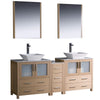 Fresca Torino 72" Light Oak Modern Double Sink Vanity w/ Side Cabinet & Integrated Sinks