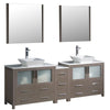Fresca Torino 84" Gray Oak Modern Double Sink Vanity w/3 Side Cabinets & Vessel Sinks